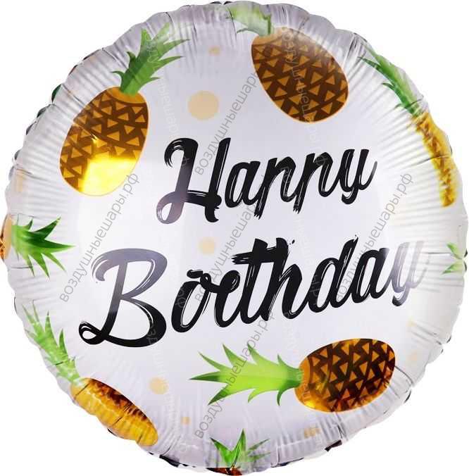 Шар с гелием Круг, С Днем рождения! , желтые ананасы, 46 см.- это замечательный подарок и необычое украшение для вашего мероприятия!