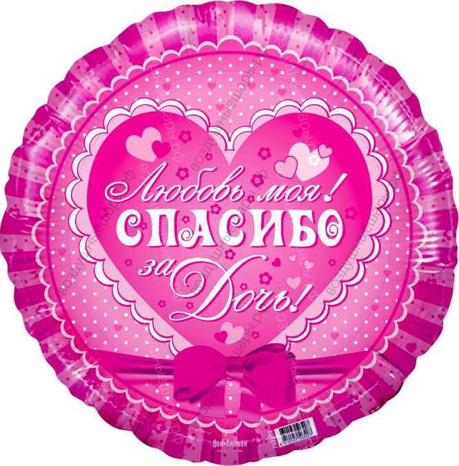 Шар с гелием Круг, Спасибо за дочь! Любовь моя!, Розовый, 46 см.- это симпатичный подарок и замечательное украшение для вашего события!