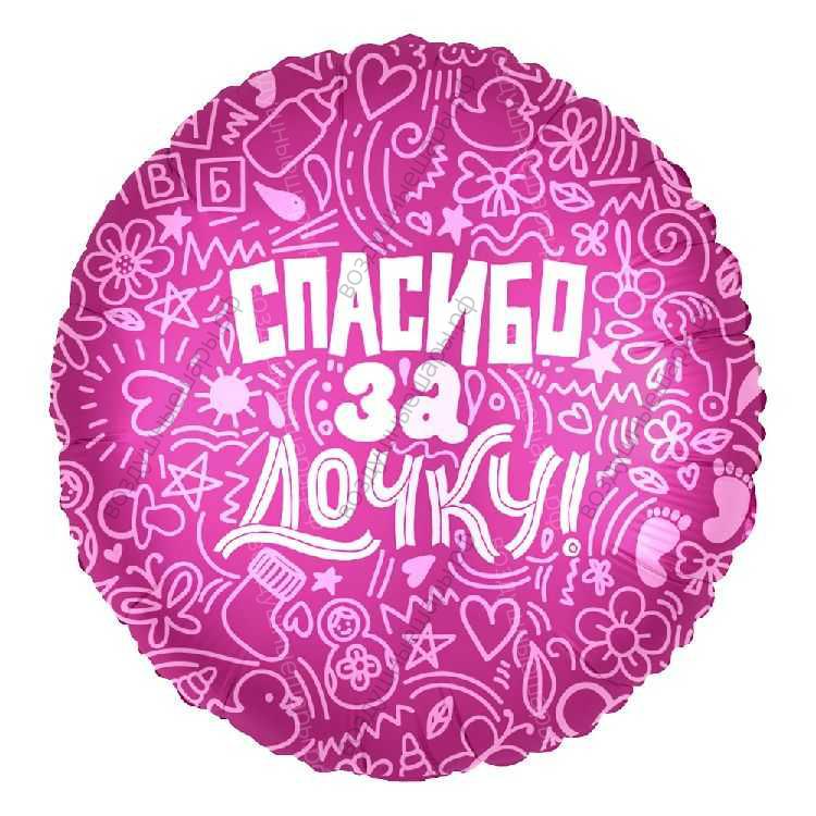 Шар с гелием Круг, Спасибо за дочку!, Розовый, 46 см.- это сказочный подарок и симпатичное украшение для вашего торжества!