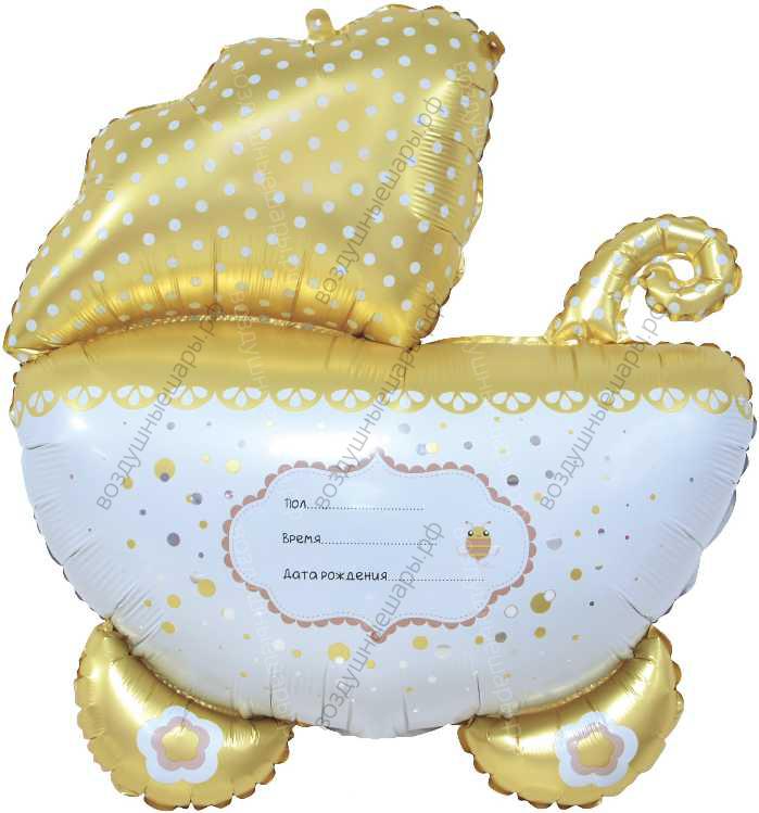 Шар с гелием на выписку, Коляска- метрика золотая, 89 см. характеристики: