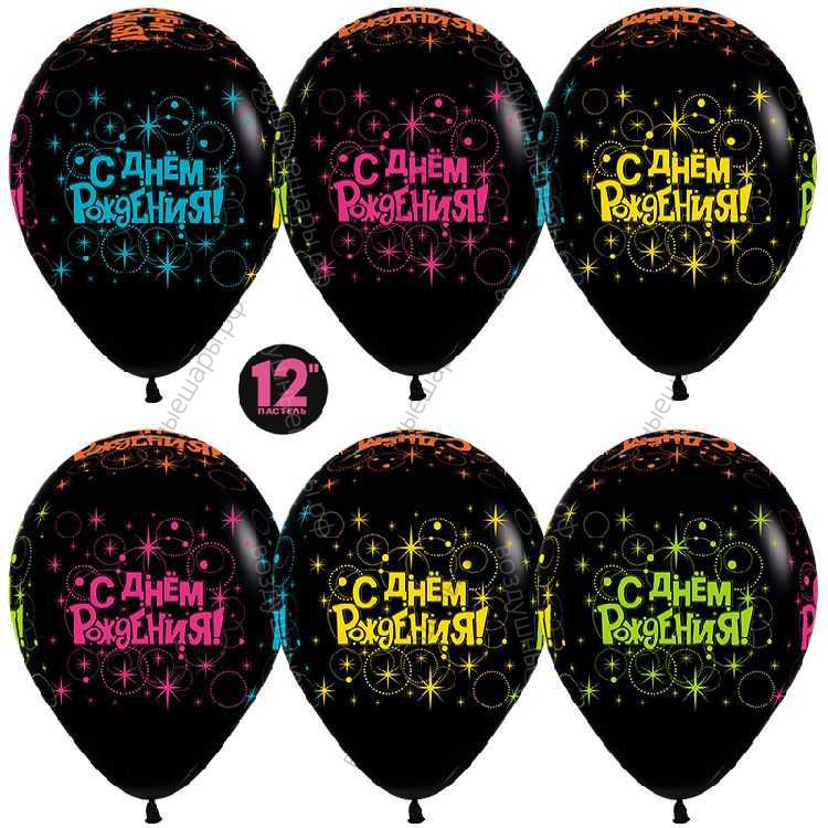 Шар с гелием С Днем Рождения!, Черный (080), пастель, 5 ст многоцвет флюор, 30 см. характеристики:
