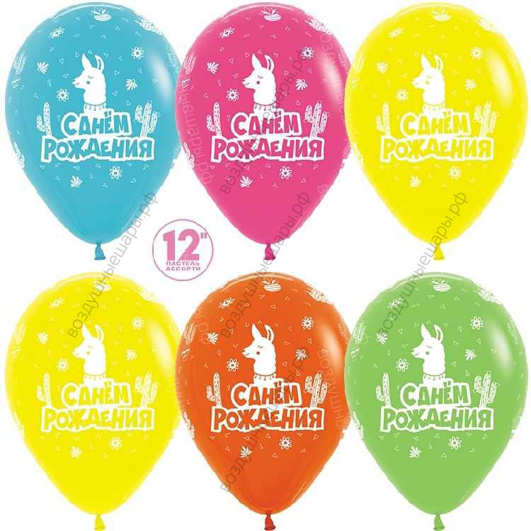 Закажите Шар с гелием С Днем Рождения! (лама), Ассорти, пастель, 5 ст, 30 см. с доставкой по Москве недорого или с самовывозом прямо сейчас. Звоните!