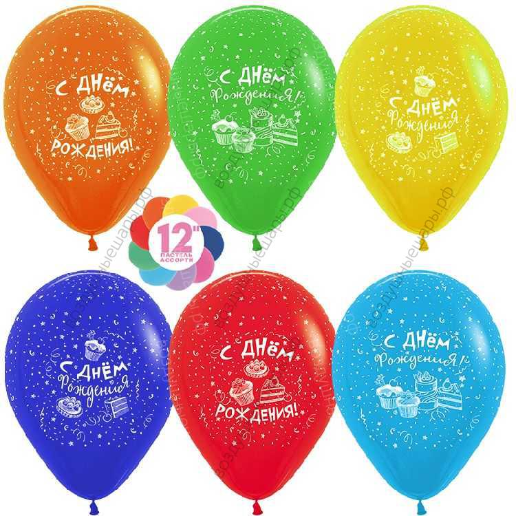 Закажите Шар с гелием С Днем Рождения! (сладости), Ассорти, пастель, 5 ст, 30 см. с доставкой по Москве недорого или с самовывозом прямо сейчас. Звоните!