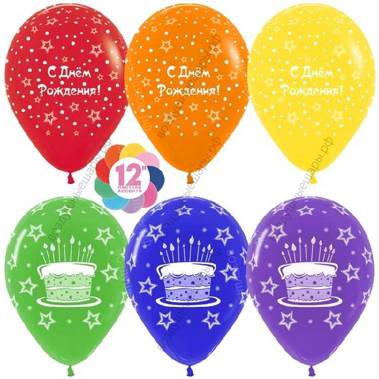 Закажите Шар с гелием С Днем рождения! (торт и звезды), Ассорти, пастель, 5 ст, 30 см. с доставкой по Москве недорого или с самовывозом прямо сейчас. Звоните!