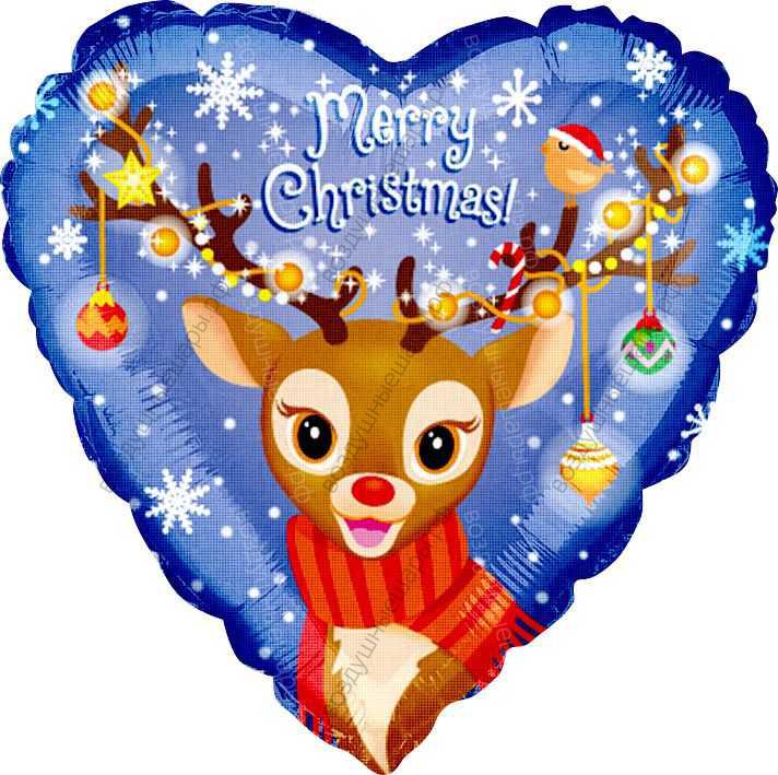 Шар с гелием Сердце, Рождественский Олененок, 46 см.- это симпатичный подарок и незабываемое украшение для вашего праздника!