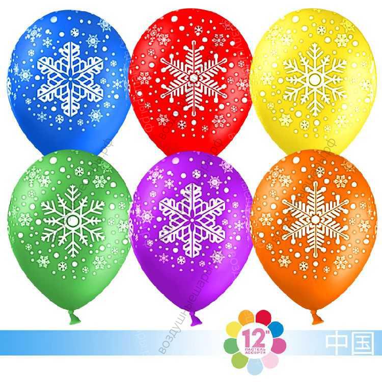 Шар с гелием Снежинка, Ассорти, пастель, 5 ст, 30 см., как и любые гелиевые шары с рисунками, могут быть прозрачными, матовыми или перламутровыми (см. название).