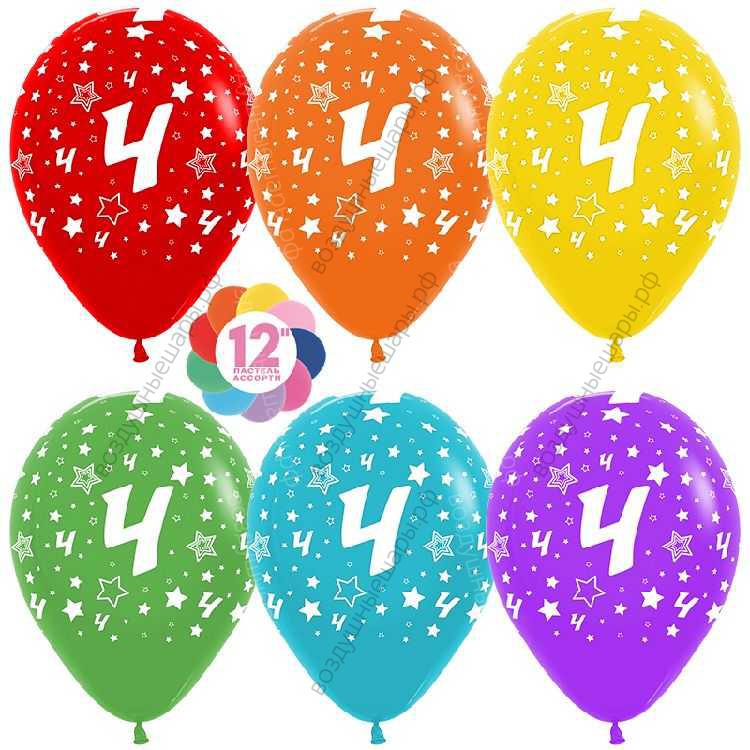 Шар с гелием Цифра 4, четверка (звезды), Ассорти, пастель, 5 ст, 30 см. характеристики: