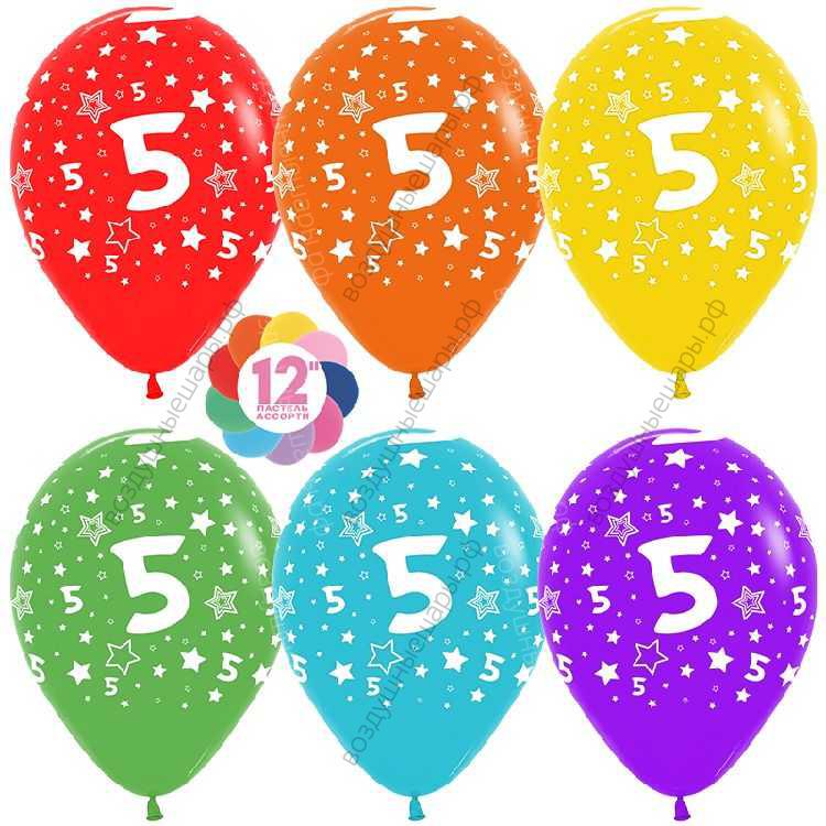 Шар с гелием Цифра 5, пятерка (звезды), Ассорти, пастель, 5 ст, 30 см. характеристики: