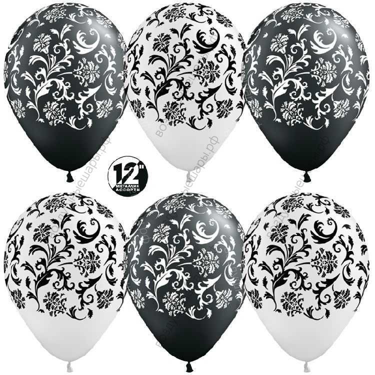 Закажите Шар с гелием Узоры, Жемчужный (406)/Черный (580), металлик, 5 ст, 30 см. с доставкой по Москве недорого или с самовывозом прямо сейчас. Звоните!
