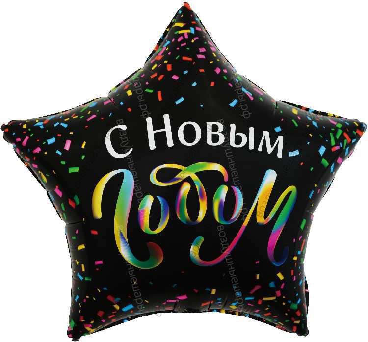 Шар с гелием Звезда, С Новым Годом (разноцветное конфетти), Черный 56 см.- это превосходный подарок и эффектное украшение для вашего события!