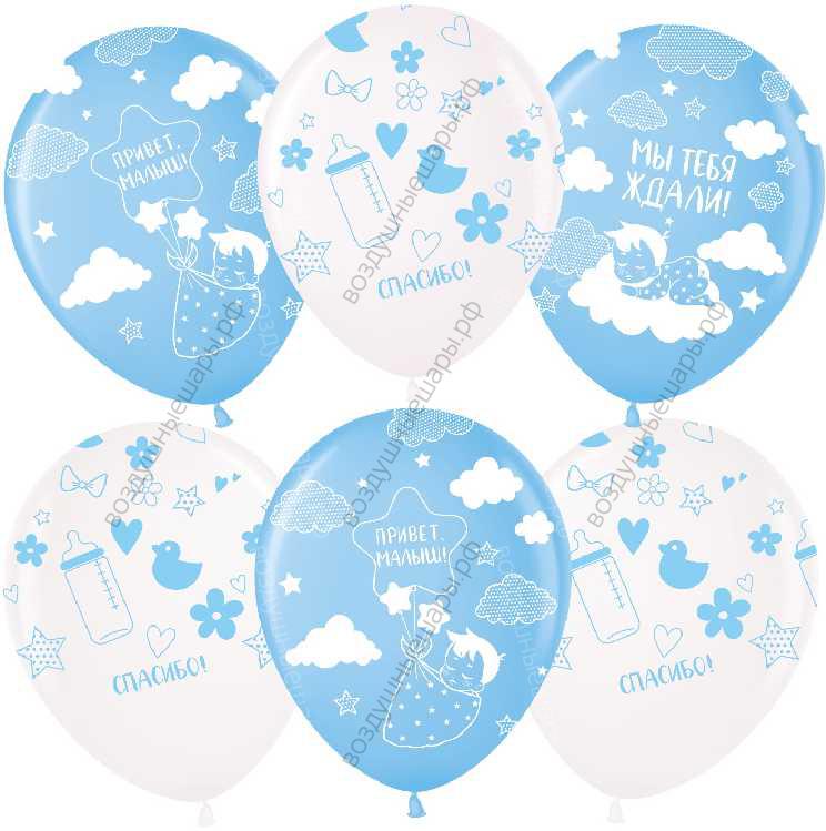 Шарики с гелием на выписку Привет, Малыш!, голубые и прозрачные, 30 см. характеристики: