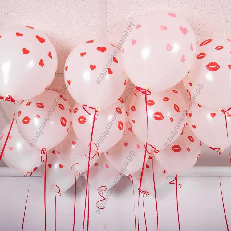 Шары латексные под потолок с рисунком "Поцелуи и сердечки" из шаров это изысканный подарок и привлекательное украшение для вашего события!