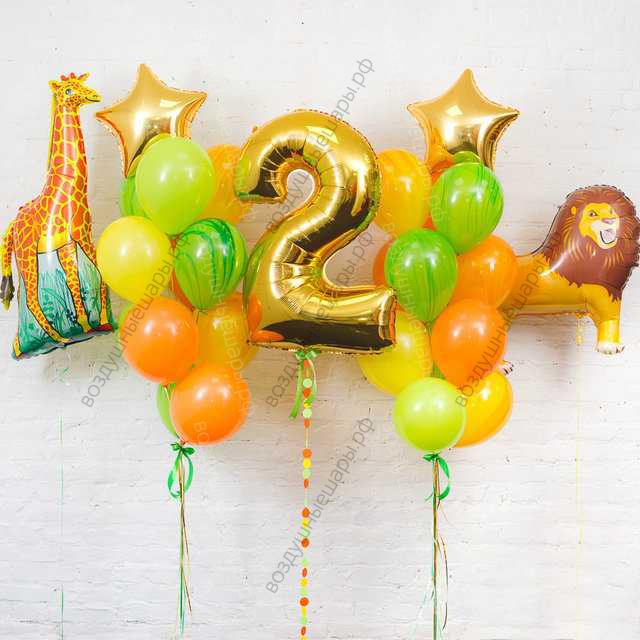 Закажите Шары на 2 годика ребенка фотофон "Африка", 26 шаров+цифра недорого с доставкой по Москве прямо сейчас!