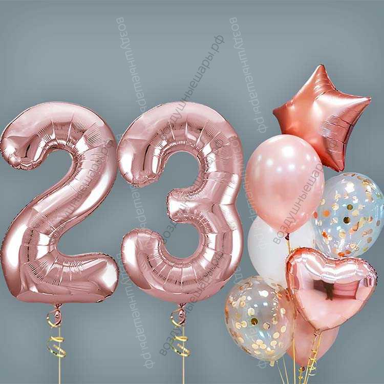 Шары на 23 года женщине, сет "Розовое золото", 7 шариков с гелием и цифры характеристики: