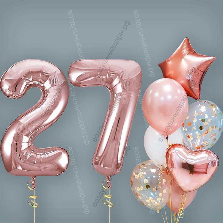 Шары на 27 лет женщине, сет "Розовое золото", 7 шариков с гелием и цифры характеристики: