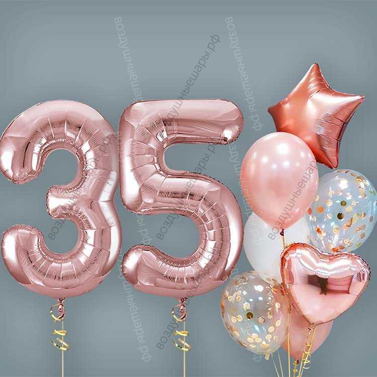 Закажите Шары на 35 лет женщине, сет "Розовое золото", 7 шариков с гелием и цифры, . недорого с доставкой по Москве прямо сейчас!