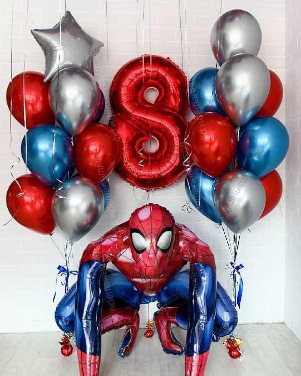 Закажите Шары на день рождения для мальчика на 8 лет "Человек-паук", 20 шаров + цифра + фигура недорого с доставкой по Москве прямо сейчас!