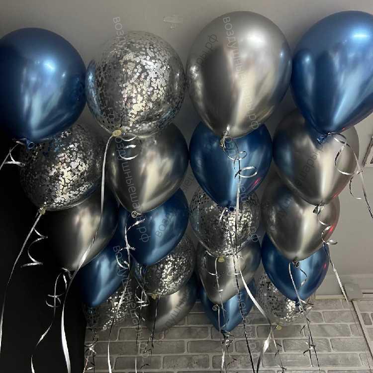 Шары под потолок серебряный и синий хром и шарики с конфетти характеристики: