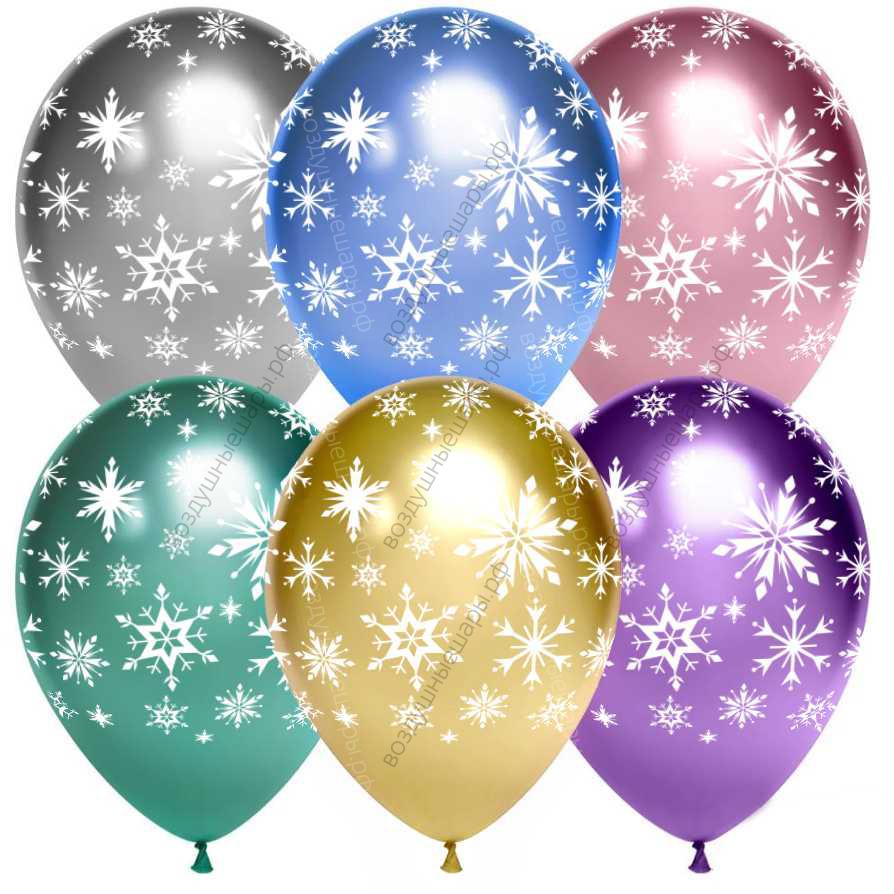 Шары с гелием Искры снежинок, Ассорти, хром, 5 ст, под потолок, 30 см., как и любые шары с гелием с рисунками, могут быть прозрачными, матовыми или перламутровыми (см. название).