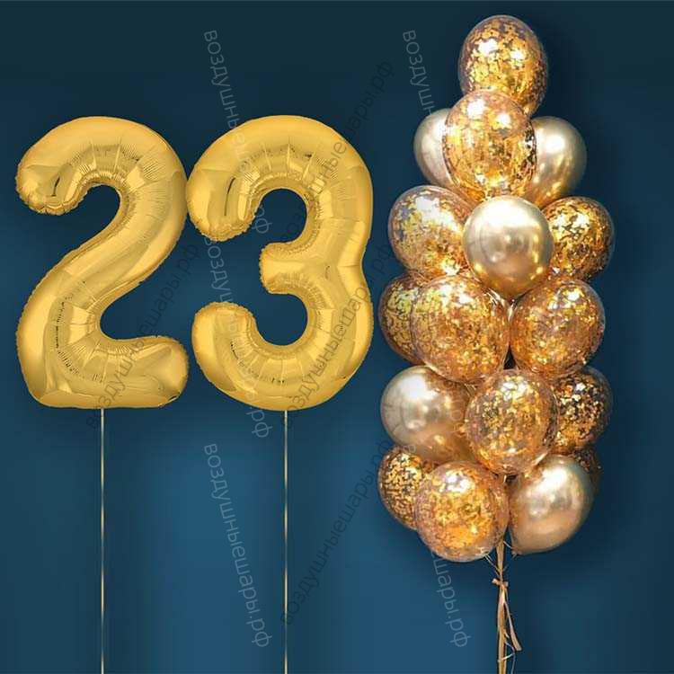 Шары с гелием на 23 года, сет "Золотой Хром", 19 гелиевых шариков и золотые цифры характеристики: