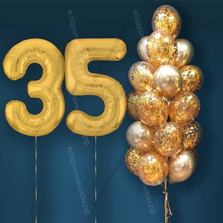 Шары с гелием на 35 лет, сет "Золотой Хром", 19 гелиевых шариков и золотые цифры характеристики: