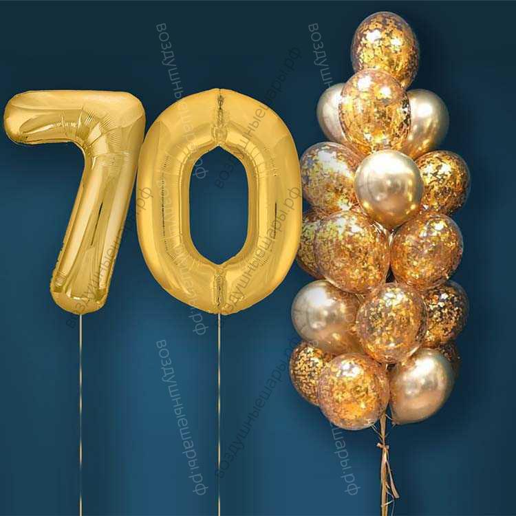 Шары с гелием на 70 лет, сет "Золотой Хром", 19 гелиевых шариков и золотые цифры характеристики: