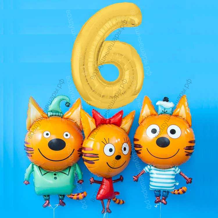 Закажите Фотозона из шаров Три кота на День рождения, 6 лет ребенку, 3 фигуры и цифра, с гелием недорого с доставкой по Москве прямо сейчас!