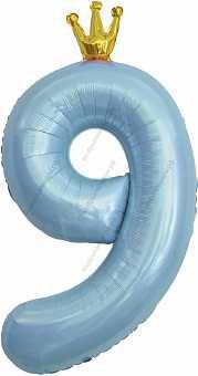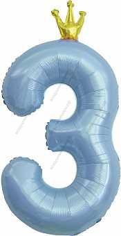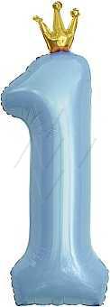 Шары-цифры Голубые с короной с гелием, 90см, 1 шт.