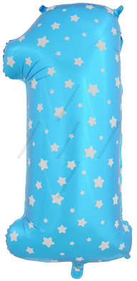 Шары цифры СИНИЕ СО ЗВЕЗДОЧКАМИ с гелием, 1 шт.