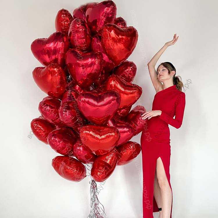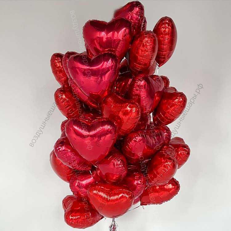 Шикарный букет из 35 красных фольгированных сердец из шариков это очаровательный подарок и необычое украшение для вашего праздника!