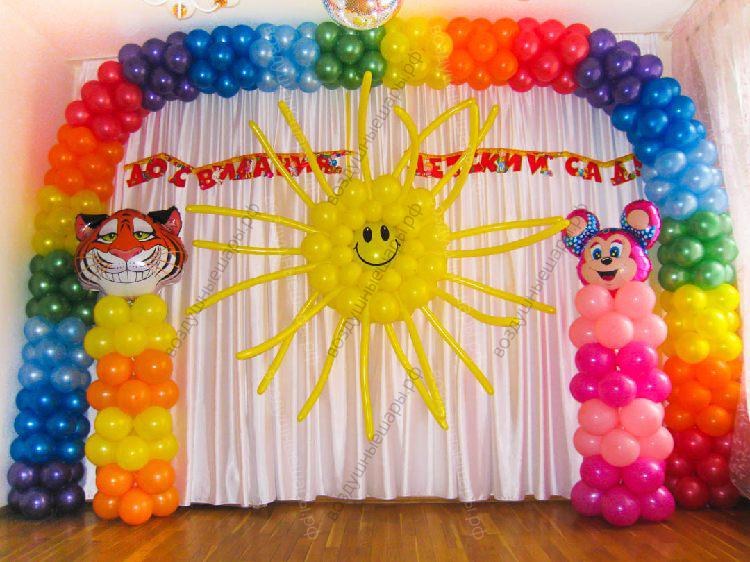 Солнце и радуга из шаров на выпускной в детском саду. характеристики: