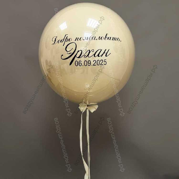 Стеклянный дабл шар Метрика ребенка, Белый песок, 60 см., 1 шт.