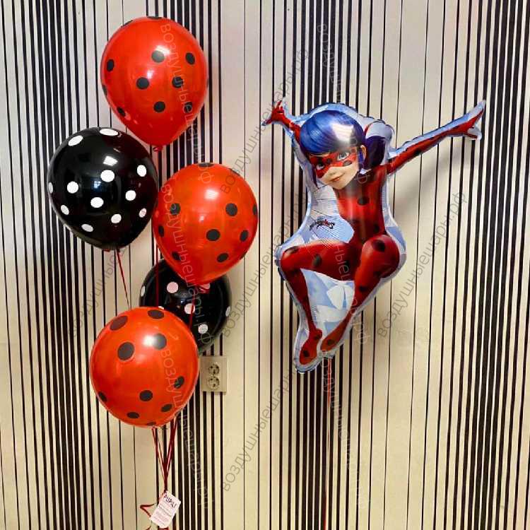 Связка шариков в горошек с фигуркой, 5 шаров+Леди Баг
