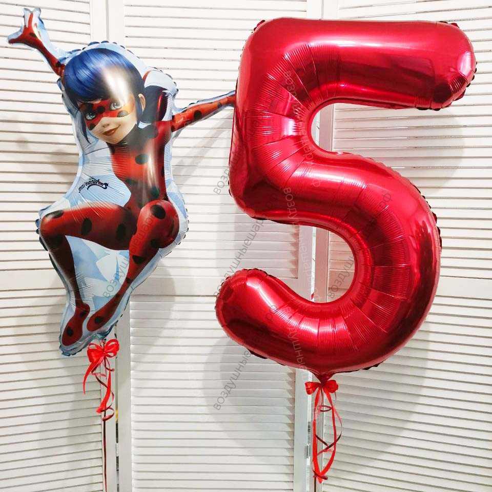 Закажите Цифра 5 красная на день рождение и фигура Леди Баг с доставкой прямо сейчас!