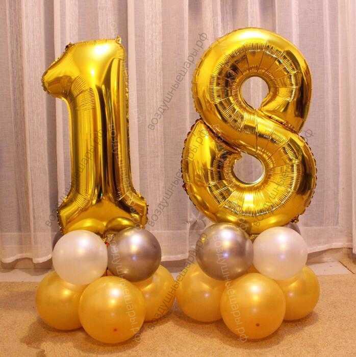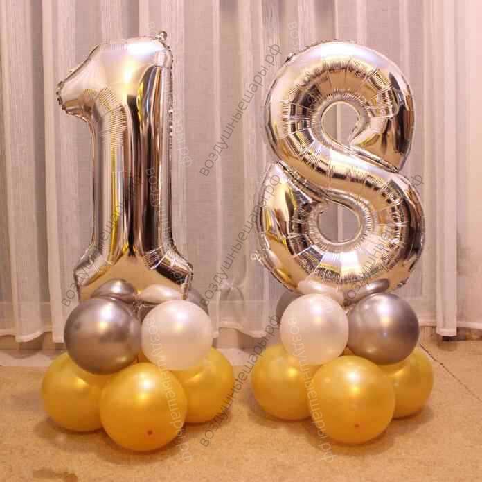 Цифры на День рождение на подставке из шаров "На 18 лет", комплект из 2х цифр