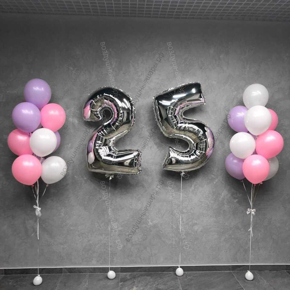 Эта композиция из воздушных шаров замечательно подойдет для таких мероприятий как: 25 лет .., но не только. Она сделает эффектнее ваш праздник!