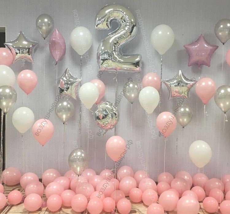 Закажите Украшение на День рождения девочки Малышке 2 года, 80 шаров + ЛЮБАЯ цифра недорого с доставкой по Москве прямо сейчас!
